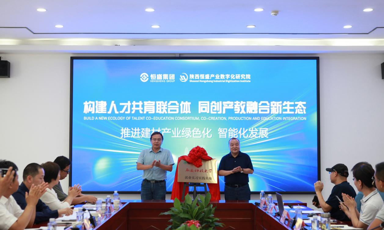 活动中,与会人员观看了恒盛集团宣传片,详细介绍了公司的经营状况、核心业务和发展战略;王武锁表示集团通过校企优势资源的融合,为企业发展搭建人才引进通道,共同推动产业链、创新链和人才链深度融合的新发展格局;李绥波介绍了公司公司的基本情况,从资源共享、项目合作、文化融合等方面就人才共育、产教融合进行了交流,希望进一步拓宽校企合作空间,提升协同育人质量;贾澎涛以“绿色建材数字化智能化发展”为主题做主题分享;双方举行了校企合作“就业实习实践基地”授牌仪式。
