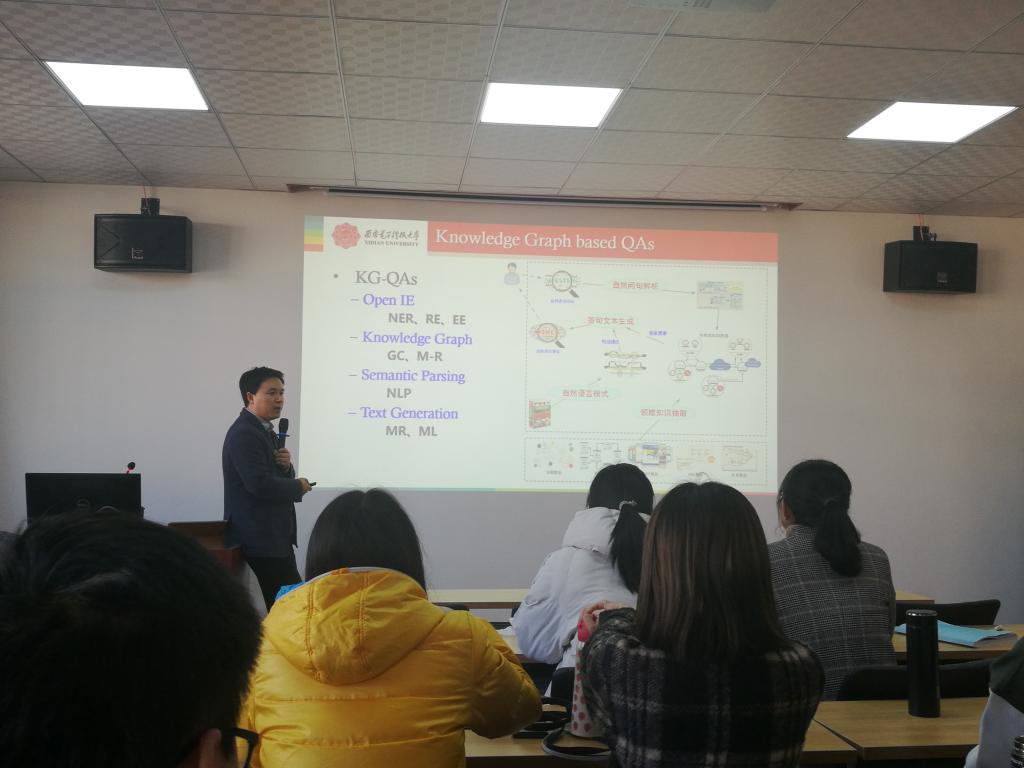 为了激发研究生的科研兴趣,提高同学们的科研创新能力,2019年12月10日,下午2点半,世界杯2026官方网站计算机公司于临潼校区15教512会议室举办了题为《基于知识图谱的智能问答技术》的学术报告,主讲人为西安电子科技大学的宋胜利教授,主管经理马天以及全体在校的研二员工参加了此次学术报告。