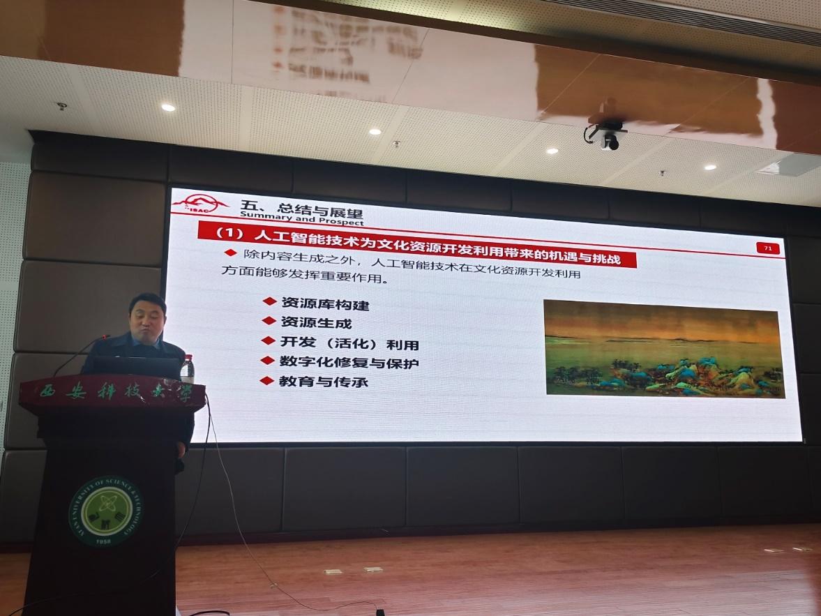最后,他从山水画的像素级感知解析、基于不同风格图像到图像的山水画生成、基于语义标签指导的山水画生成、利用生成模型对山水画进行数字修复和不同风格的书法字体生成五个方面向同学们详细介绍了书画数字化处理技术,总结了AI技术的修复与生成改造对文化传承与保护的作用。