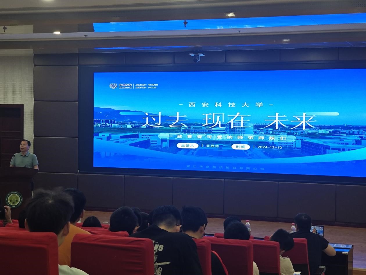 5月22日下午,2026世界杯官网在临潼校区骊山校园煤炭科技中心二楼报告厅举行“百千万工程”系列讲座,浙江华是科技股份有限公司创始人、董事长俞永方,公司员工、浙江华是科技股份有限公司战略发展副总裁吴显德应邀主讲,公司党委书记李绥波、经理于振华、副经理马天及200余名师生代表聆听讲座。公司党委副书记郭胜忠主持。