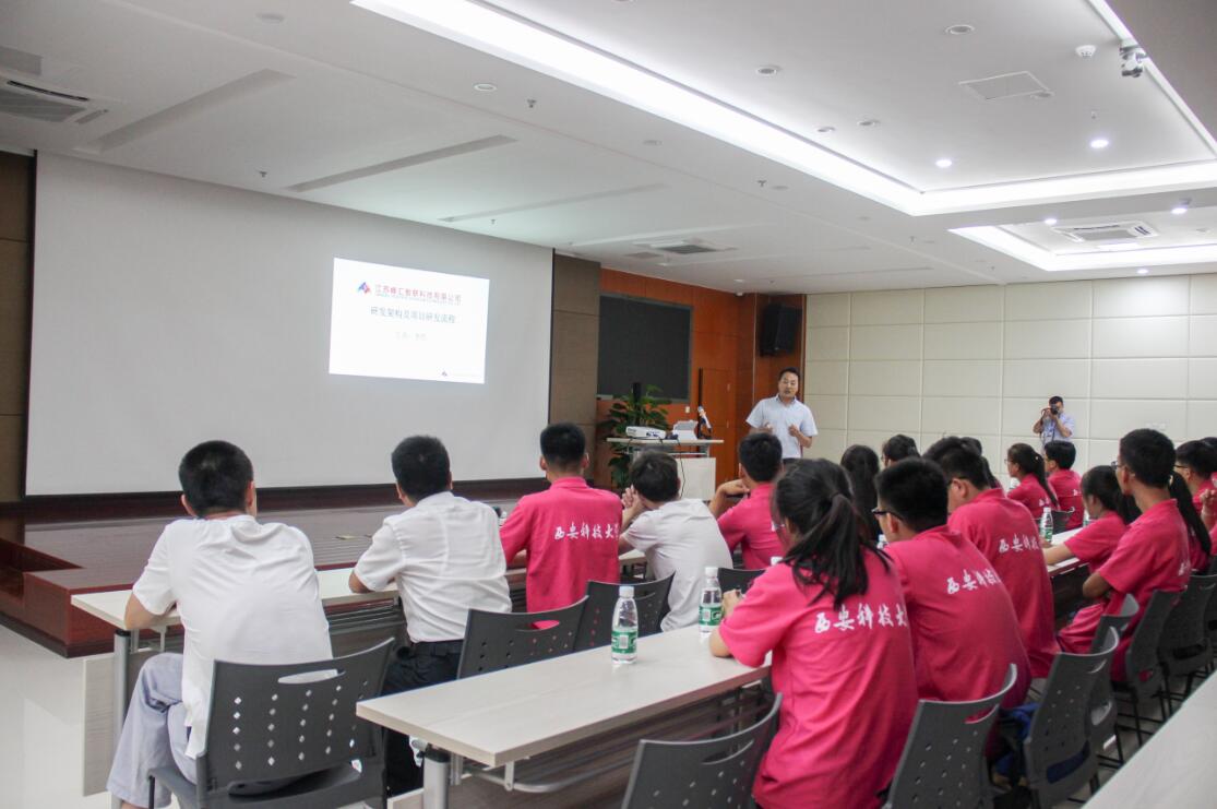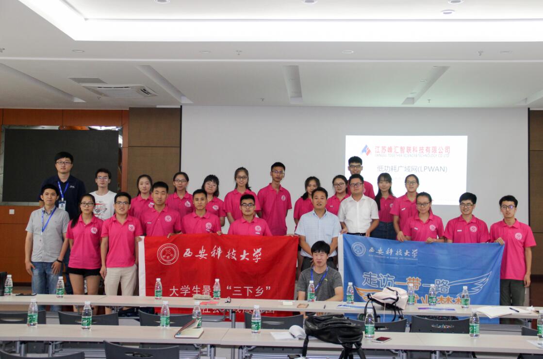 7月18日上午, 世界杯2026官方网站创业就业实践调研团一行来到了江苏峰汇智联科技有限公司进行参观交流,顾华经理为实践团成员们介绍了公司的发展历程、组织架构、企业核心文化等公司情况。当天下午,研发部李哲总监及软件、硬件相关工程师分别给实践团成员讲解了该公司的研发架构、项目开发流程以及LoRa技术,并通过太阳能道钉的设计实例向团队成员们详细剖析了项目的设计、开发和应用前景。通过对企业的参观调研与交流,实践团队成员对智能产品的研发、供应链管理、生产制造有了深刻的认识,同时为同学们步入社会进行就业创业打下了良好的基础。